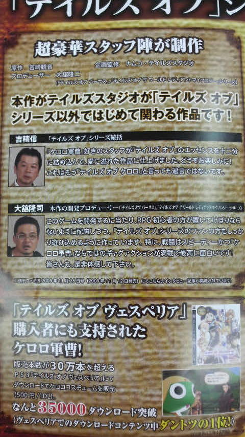 『テイルズオブヴェスペリア』購入者にも支持されたケロロ軍曹!
